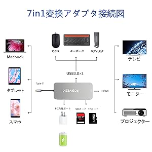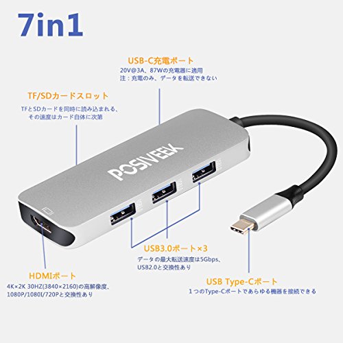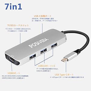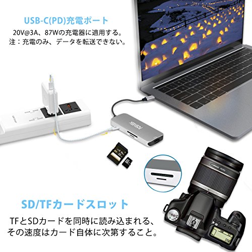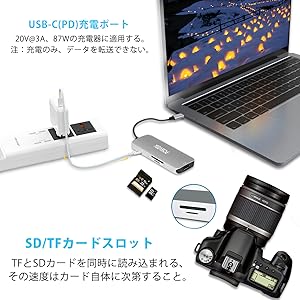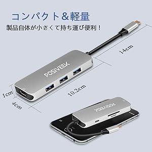 ケースがアルミニウム合金で作られ、丈夫で高級感がある一方、完璧なシールドによる信号を安定に伝送できます。ポート色々付く割りに小さくて持ち運びやすい,簡単にバッグに収納できます。Type-Cポートしかないデバイスに対して、端子不足を解消する上に設備の周辺も散らからずすっきりします!