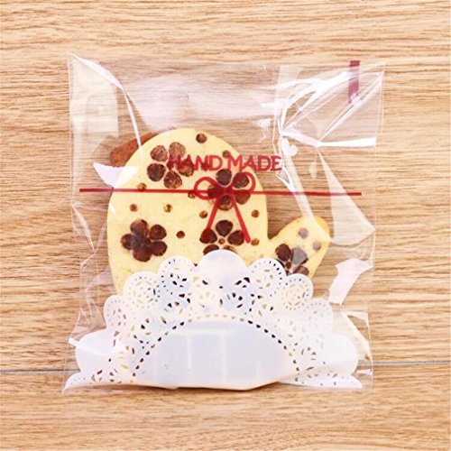 Yunko 200pcs Handmade Lace Bow Daisies Cookie Candy Soap Packaging Self-adhesive Plastic Bags for Biscuits Package(4in,5.5in )