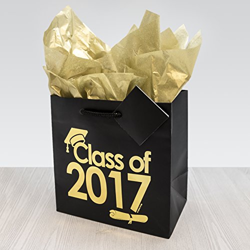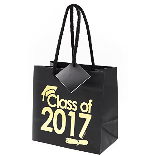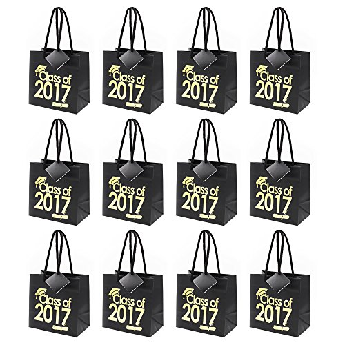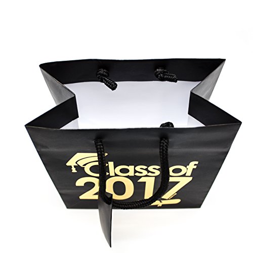 Black and Gold Class of 2017 Graduation Party Favor Bags 6" Tall (12 Count)
