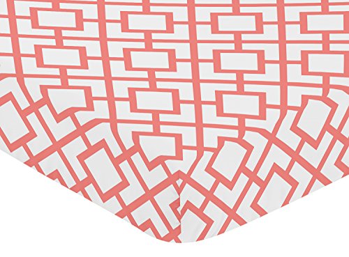 -. Title : Fitted Crib Sheet for White and Coral Diamond Baby/Toddler Bedding - Diamond P.R.Int