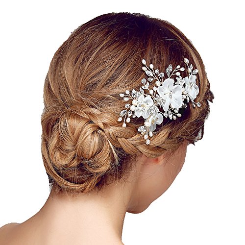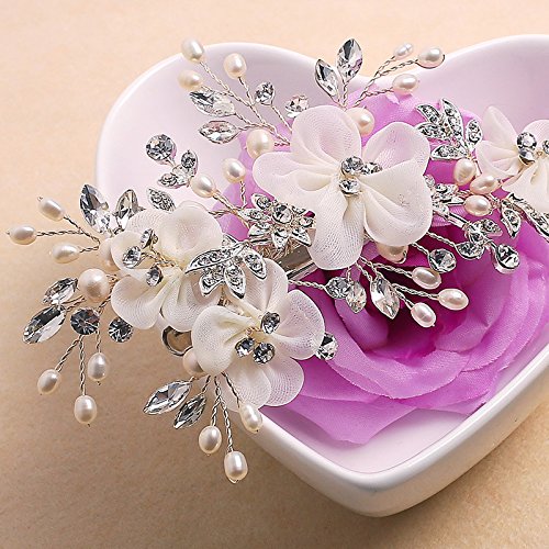 -. Title : Meiysh Bridal Flower Side Hair Clips Pearl Bridal Headpiece Wedding Accessories(White)