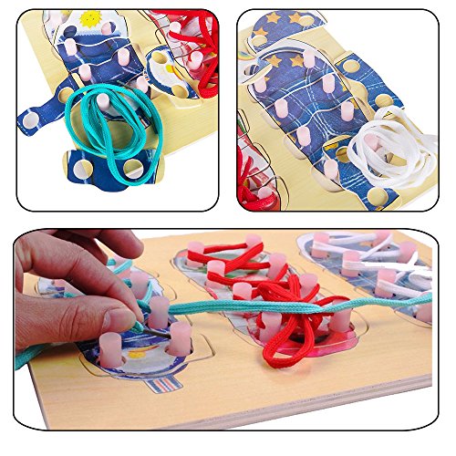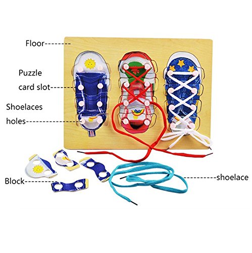Studio : Katedy Publisher : Katedy Binding : Toy Product Description DIY Shoe Lace Tying Board,Learn to Tie Your Shoe Laces Wooden Puzzle Peg Board for kids Ages 3 Up ,Shoe Lace Training Learning Activity Set-The Perfect Home School DIY Shoe Lacing Training Kit! ????TheKatedy baby Educational Toys approved all of U.S.and European regulatory standards for BabyChild safety.CEFDA approved.High quality and eco-friendly. Great wooden educational toy,aims at teaching the concepts of colors and shapes,eye and hand coordination,developing kid's intelligence and practical manual ability. Conquer the ever frustrating task of teaching your child to tie their shoe laces. they will take a little more time to learn this skill. The wooden board offers the perfect solution for teaching your kids to tie their laces on their own. After perfecting basic lace tying,children can also proactively learn different styles,eleaborating their creative sides. Funny to learn skills,making the abstract arithmetic visualized and interesting.One of the must-have educational toys in the growth of every child.Great Birthday Gift,Christmas Gift!
