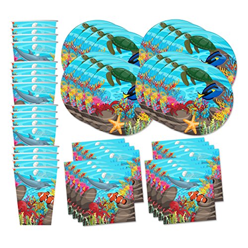 -. Title : Ocean Sea Life Birthday Party Supplies Set Plates Napkins Cups Tableware Kit for 16