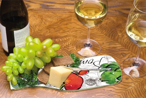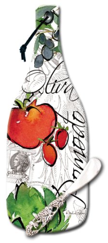 CounterArt Wine Bottle Shaped 12-1/2-Inch Glass Cheese Board with Spreader Knife, Alfresco Italia