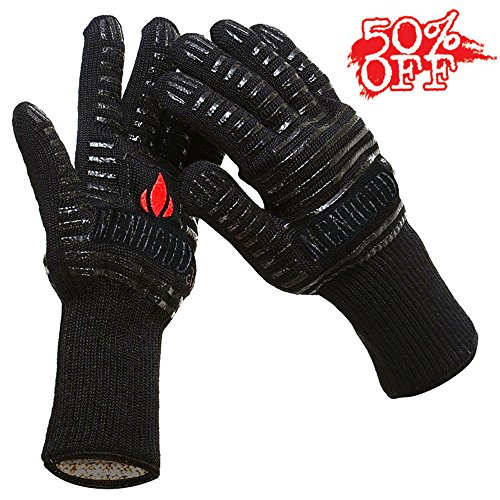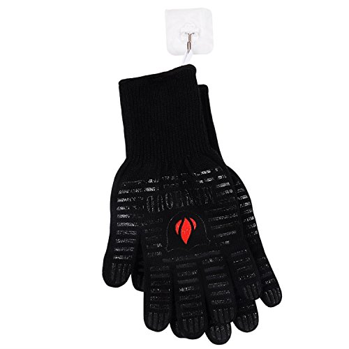 - 【PREMIUM MATERIAL 】 The heat resistant glove is flexible, provides all fingers grip, can withstand extreme heat and even an occasional flame. The front and back side are made of antiskid silicone stripe.What can keep your hands flexible and any object won't easily slip off