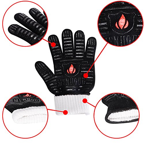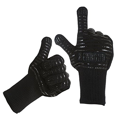 - 【MAXIMUM HEAT PROTECTION 】 Menhoud puts your safety first! Our heat resistant gloves can withstand extreme heat up to 932F. The outer layer crafted with aramid fabric, it is a man made textile with amazing heat protection characteristics. Inside is 100% heat resistant poly-cotton lining,Can effectively protect your hands from flame and high temperature