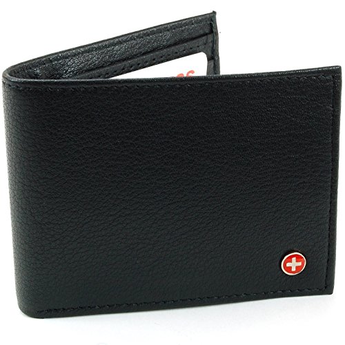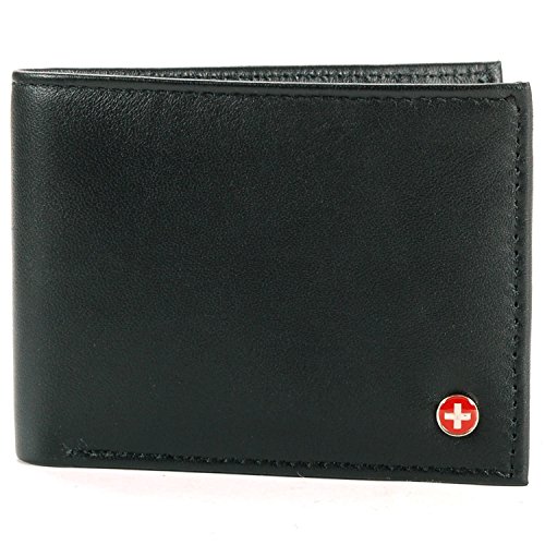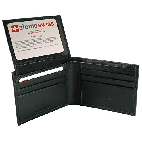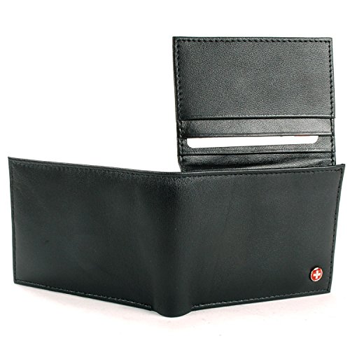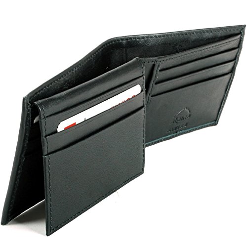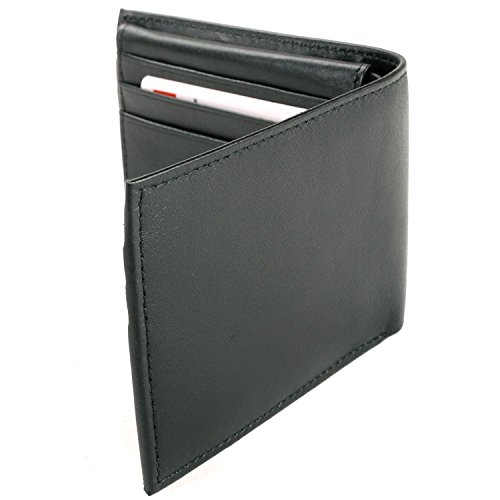 Men's Genuine Leather Flip-up ID Window + 11 more pockets Classic Bifold Black