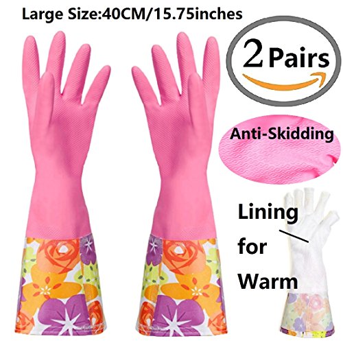 Kitchen Latex Cleaning Gloves with Lining,2 Pairs
