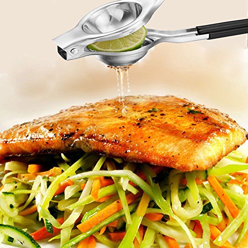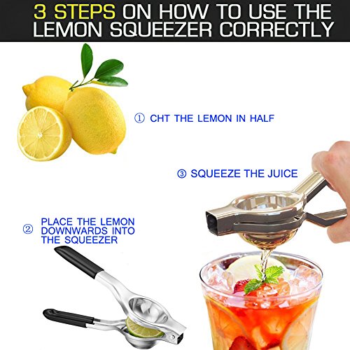 -. Feature : squeeze fresh natural lemon and lime juice, using lemon squeezer anywhere at any time if you need / Premium quality manual lemon juicer, using security stainless steel materials, using hand polishing process / Silicone handles for extra comfort, squeeze lemons and limes to the last drop, effortless with a proper torque handle, the spoon with 12 holes make the juice flow easily / Dishwasher safe and easy to clean, no rust, and durable, silicone handle make it will not scratch / The best must tool for Kitchen and bar, you can get the original taste of lime juice, make our salads, grilled meat, fish or drinks and cooking more palatable