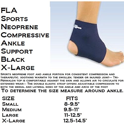 -. Feature : Sports neoprene for compression and therapeutic warmth / Limits swelling and decreases pain for mild acute sprains/strains / FLA Pediatric Neoprene Ankle Support allows for a full range of motion / Easy slip-on style, open heel / Can be worn over or under a sock