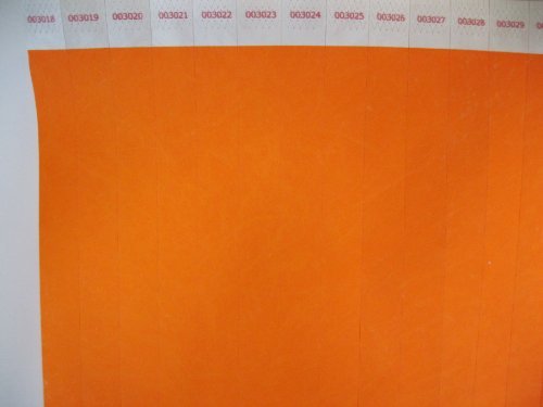 -. Feature : 400 Neon Orange Tyvek Wristbands 3/4 Inch / consecutively numbered / waterproof, durable, great one time use / clubs, crowd control, amusement parks / raffles, identifications