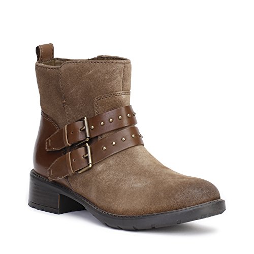 Studio : Clarks Footwear Womens Publisher : Clarks Footwear Womens Binding : Shoes Product Description Attract all eyes with the chic looking women's Clarks Artisan Swansea Grove low boot. Made from full grain leather and suede, this boot has studded leather accents, dual buckles and side zipper for an easy on/off and a precise fit. Fitted with an Ortholite sheet insole, it wicks away odor-causing microbes. Its Clarks Plus technology distributes weight evenly around the foot to reduce strain. A synthetic sockliner and study steel shank offer enhanced cushioning support. Topping it all, its TPR outsole with heel support delivers slip-resistant traction control. Style and comfort wrap up in the women's Clarks Artisan Swansea Grove low boot. 0