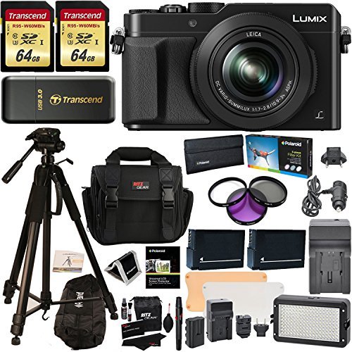 Ritz Camera Panasonic LUMIX LX100 12.8 MP Point and Shoot Camera with Integrated Leica DC Lens Black + 2 Transce