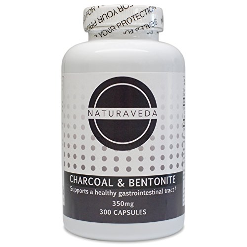 Activated Charcoal Capsules + Bentonite–300 Count, 350mg each, North American Hardwood Charcoal, Enhanced with Pharmaceutical Grade Bentonite,...