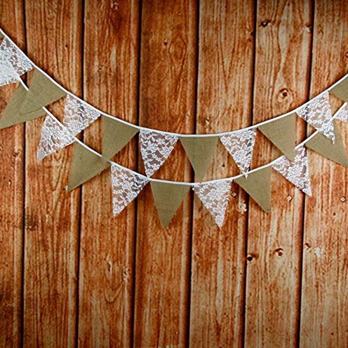 -. Title : G2PLUS® 10.4 Feet Hessian Burlap Floral Lace Banner Bunting Garland Rustic Wedding Party Home Decoration