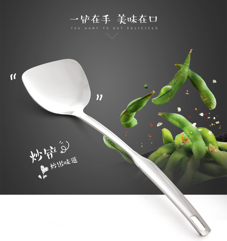 加厚加长不锈钢锅铲炒菜铲子厨具铁菜铲长柄炒勺中式一体鱼铲平铲