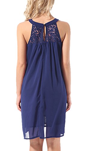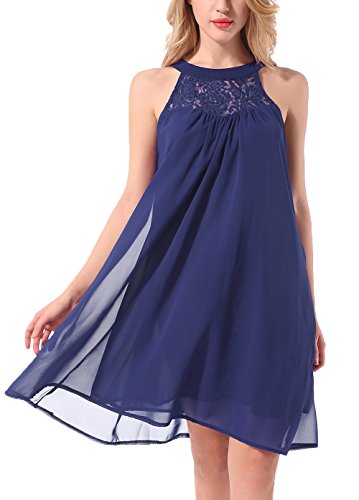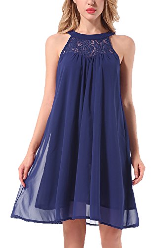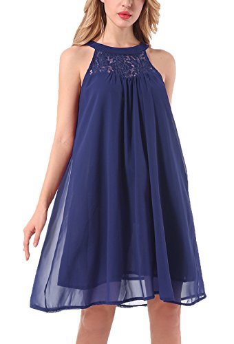 Features: Sleeveless, Halter Neck, Back Keyhole with buttons, Solid Color, Floral Lace, Swing Dress, Knee Length, Flowy Summer Halter Dress, Chiffon Mini Swing Dress