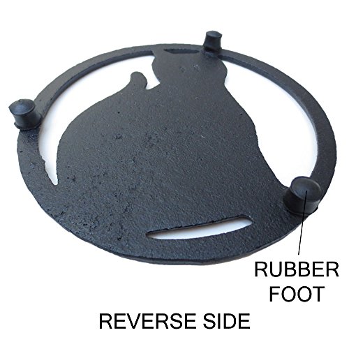 - PROTECT SURFACES FROM HEAT - Made of durable cast iron metal, the raised cat trivet sits on non-scratch rubber feet and protects surfaces from direct heat. Great for granite and quartz counters, wood kitchen and dining table, these sturdy heat safe trivets support hot pots, pans, heavy pressure cooker, dishes, bowls and plates.