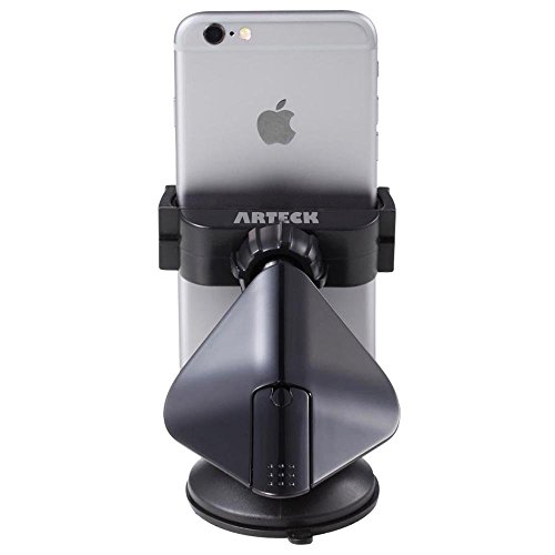 Car Mount, Arteck Universal Mobile Phone Car Mount Holder 360° Rotation for Auto Windshield and Dash, Universal for Cell Phones Apple iPhone 6s Plus 5s 5c, Android Smartphone, GPS and Others-Black