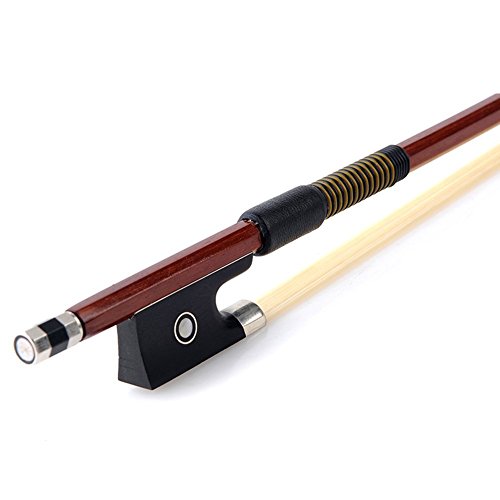-. Feature : Completely Hand-Made with Selected Brazilwood & Natural Mongolian Horse Hair; / Half-Line Ebony Frog with Inlaid Pearl Eye and Pearl Slide / Brazilwood Stick; Gloden Winding; Nickel Silver Mounted; Synthetic Leather Thumb Grip / Quality Fittings, Great Sound, Well Balanced for Quick Response and Resiliency. / Full Size 4/4 Bow for 4/4 Full Size Violin.