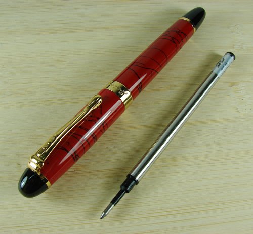 -. Feature : Refill : standard . Jinhao has two type refills for their rollerball pens . One is push type while other is screw type . If your refill is push type ,you can purchase the jinhao or duke push type refills (ASIN :B0130LL8L0 ) . If you refill is screw type , it works with jinhao and montblanc screw type refill ( ASIN : B01LX1D6WI) / Capped length 140mm ,Diameter 13mm , pen weight 45g / Package :one pens and one lanxivi pen pouch as picture shown / 100% Satisfaction Gurantee : If there is any reason you do not like the pen ,just send us a message ,we can offer you a full refund or replacement !