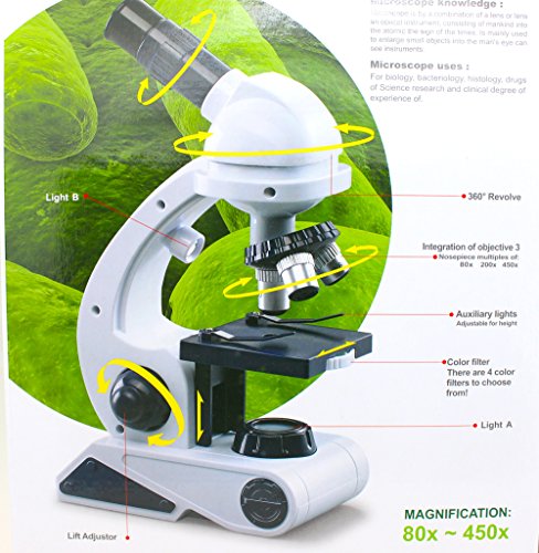 STUDY & AMUSEMENT MICROSCOPE FOR KIDS 80X, 200X, AND 450X MAGNIFICATION