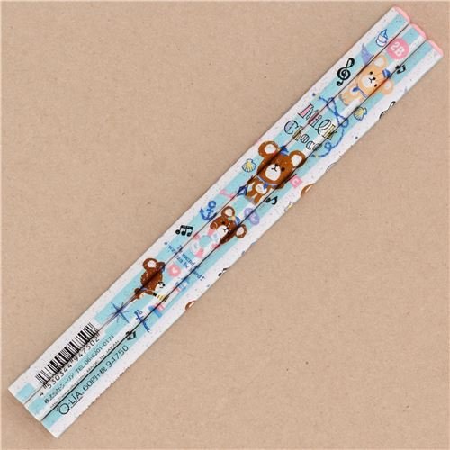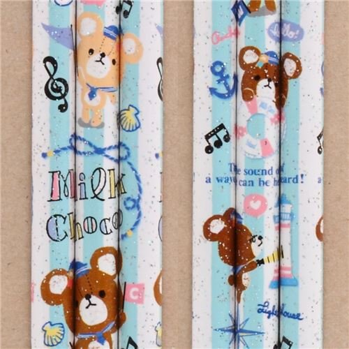 (Q-Lia)/Arts Crafts/Pencils Erasers/DIRECT FROM USA/White turquoise stripe glitter pencil with cute bear as sailor