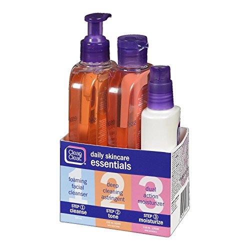-. Feature : Contains one Essentials Foaming Facial Cleanser, 8 fl oz; one Essentials Deep Cleaning Astringent, 8 fl oz; and one Essentials Dual Action Moisturizer, 4 fl oz / 3 Step Skin Care Routine / If all you want is clean, beautiful skin, then all you need is Clean & Clear / Because taking good care of your skin should be a no-brainer
