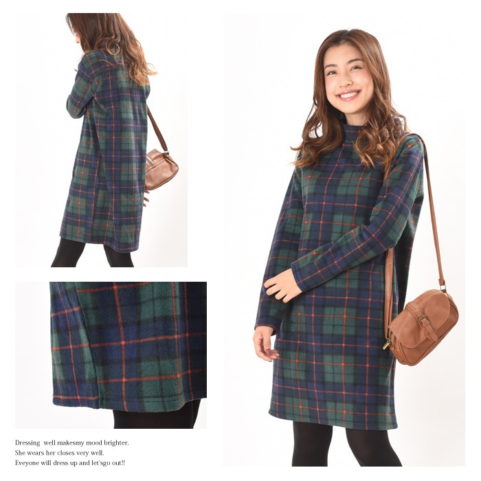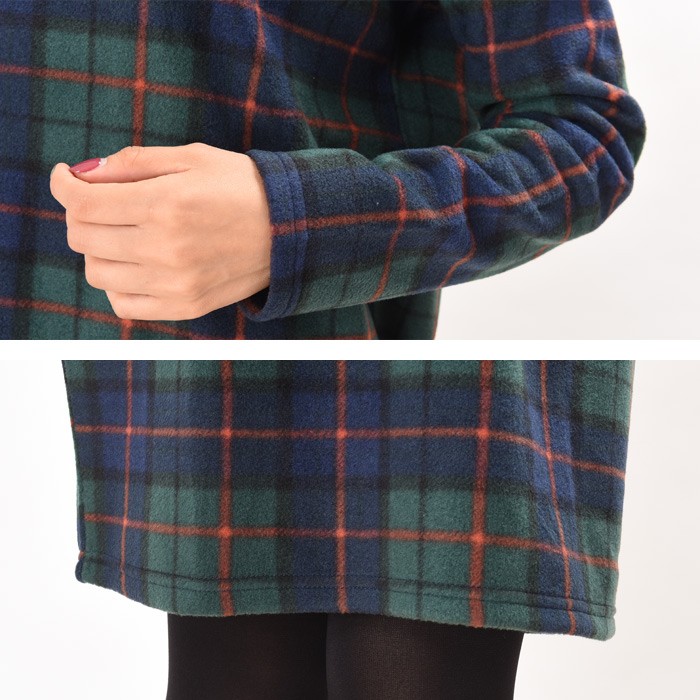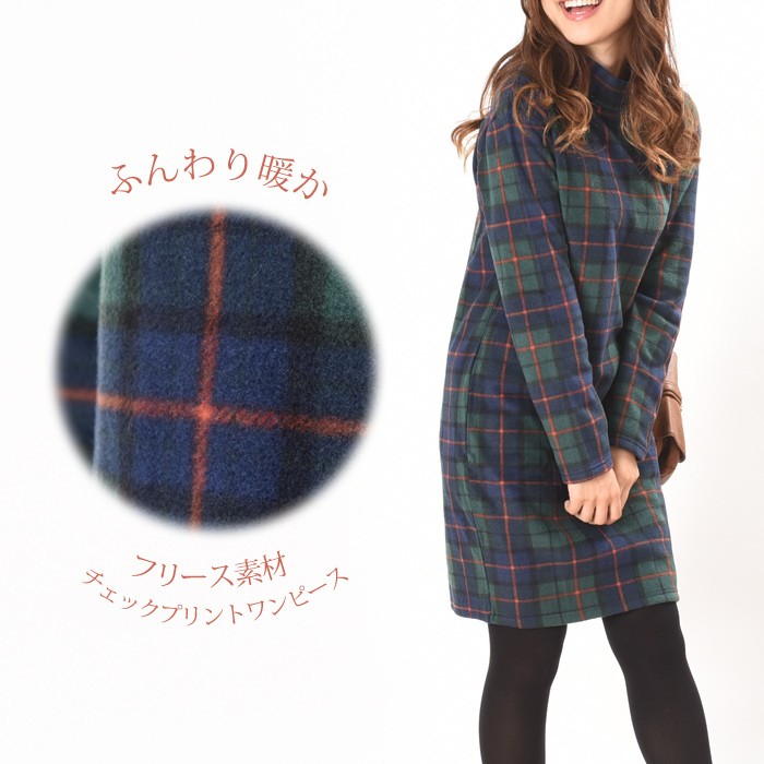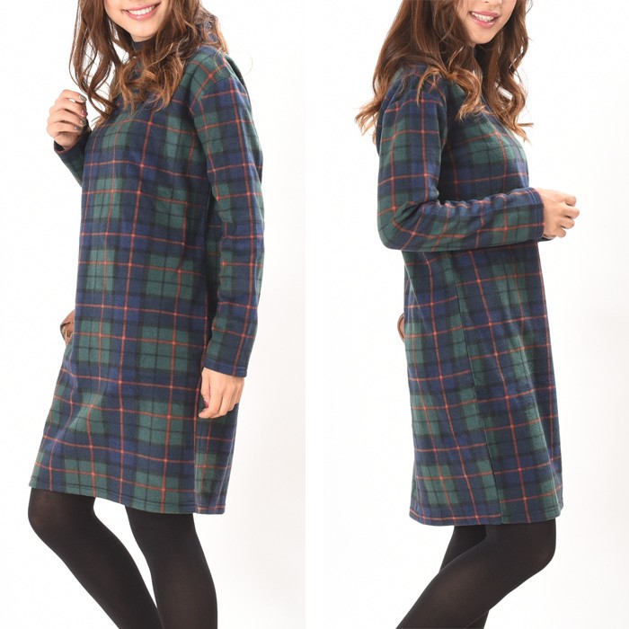 ふんわりとした起毛で触り心地が暖かく、着心地柔らかいフリース素材のワンピースです。