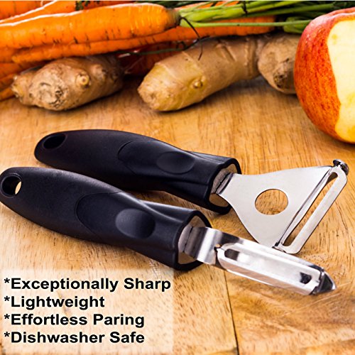 Triple Your Peeling Speed - Set of 2 Peelers For The Price of One, Sharp and Durable, Stainless Steel Double-edged Blades For All Fruits and Vegetables - Dishwasher Safe, Easy To Clean