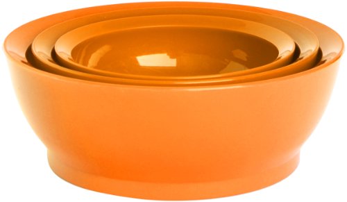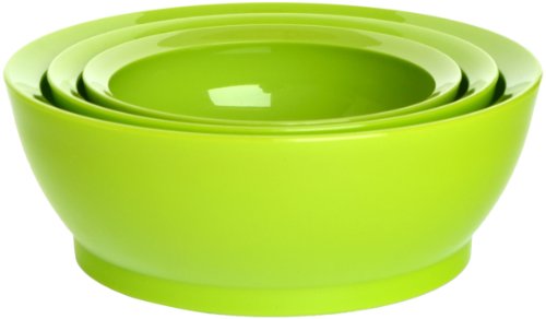 These amazing CaliBowls are the perfect non-spill, non-slip bowls for enjoying dips, cereals, salads, pastas, soups and stews. The patent pending design on the CaliBowl features an innovative curved inner-lip that guides food back into the bowls and onto your utensil, eliminating over-the-edge spills and creating effortless food control. The low-profile design is built on a wide, non-slip stable base with a shallow depth for plate-like usage. This set of 3 nested bowls includes one each: 12-, 28-, and 44-ounce sizes and are dishwasher safe. Proudly made in the USA.Feature