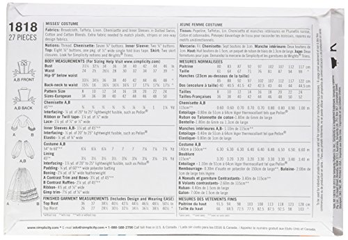 Simplicity 1818 Misses Costume Sewing Pattern, Size KK (8-10-12-14)