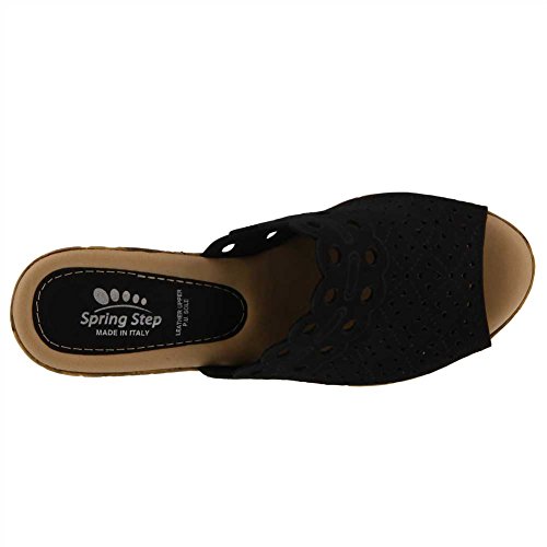 Studio : SPRING STEP Publisher : SPRING STEP Binding : Apparel Product Description Women's Spring Step, Nava Wedge Sandals Leather uppers with cut out accents Slide on style for an easy on and off Smooth leather linings for an abrasion free foot environment Padded footbed for added comfort 2 1/2 inch wedge heel with a 1 inch front platform Manmade outsole. Heel Height of 2.50 inches. Platform Height of 1.00 inches. 0