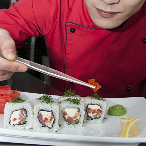 Specialty Stainless Steel Kitchen Seafood & Surgical Tweezer Food Tongs Tool - 8 Inch - Precision Serrated Tips