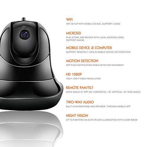 Wigoo Wireless IP Camera (PRO HD1080P) ,WiFi Security Surveillance IP Camera System for Home/ Baby with 2-way Audio & Night Vision (WPA / WPA2 AES Encryption to Protect Privacy)