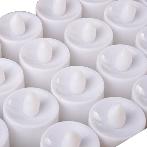 Flameless Long Lasting Battery Operated Candle Lights Smokeless Tea lights Votive Candles for Christmas, Church, Thanksgiving, Easter, Valentines Day, Confession, Birthday, Party, Indoor Outdoors Garden Restaurant Dining Room Coffee House Decoration, Romantic Dating, Propose Marriage(White PP Propylene Cylindrical Body Lights).