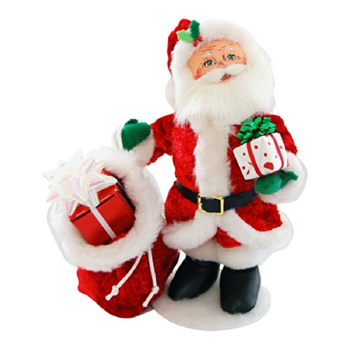 - This 9 inch Santa is dressed in a crushed velour Santa suit with a matching gift bag.