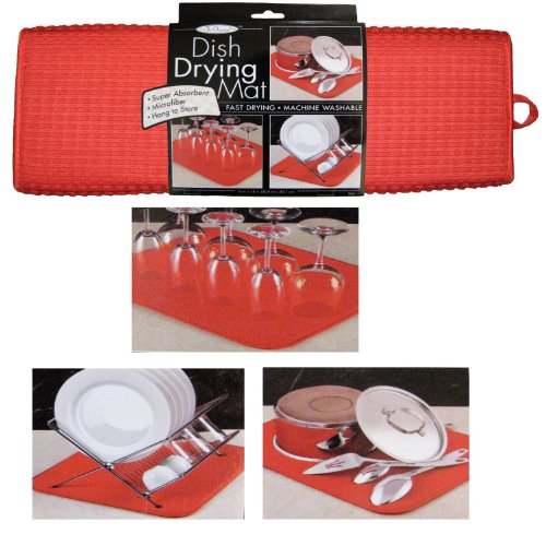 -. Title : The OriginalTM Dish Drying Mat - Microfiber Absorbent Machine Washable Multipurpose (RED 16" X 18")
