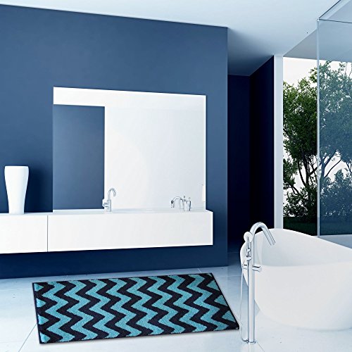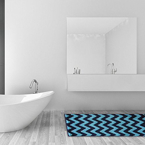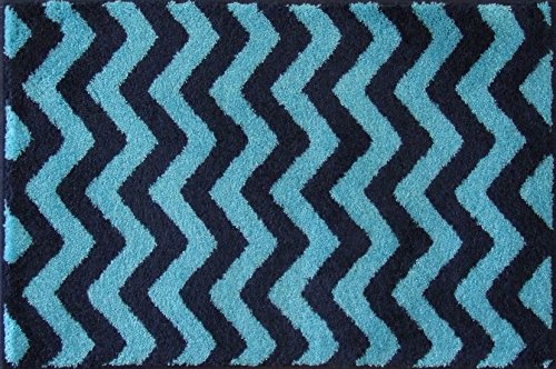 Grund Chevron Series Premium Bathroom Comfort Bath Rug, 24-Inch by 36-Inch, Blue