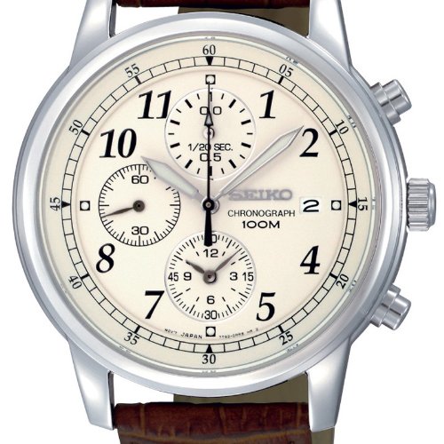 - Title : Seiko Men's SNDC31 Classic Brown Leather Beige Chronograph Dial Watch