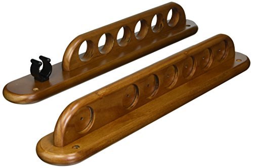 HJ Scott CR206 Standard 6-Cue Wall Mount Billiard Cue Rack with Bridge Clip