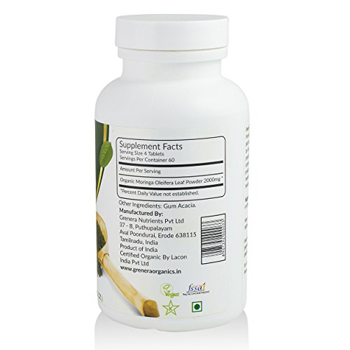 Organic Moringa Tablet - 240 Tablets/Bottle - Certified Organic (500 mg / uncoated tablet)