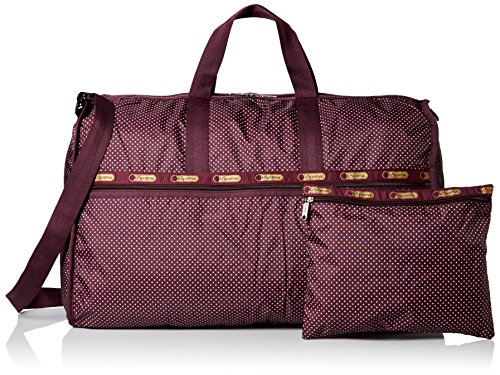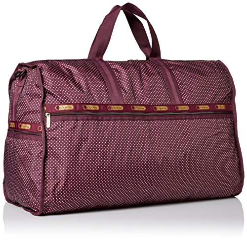 LeSportsac Extra Large Weekender Hand Duffle Bag, Burgundy Pin Dot, One Size