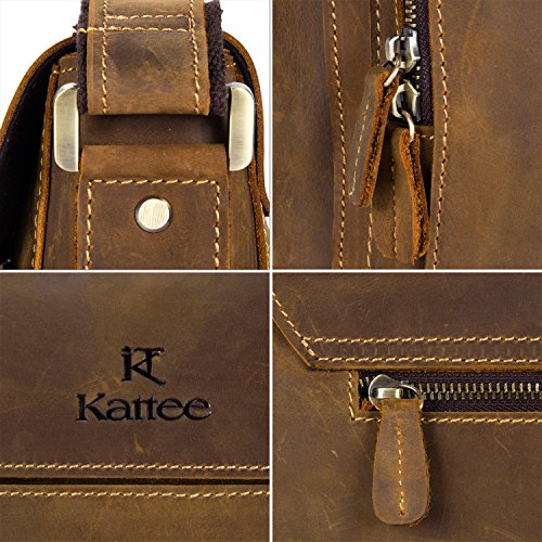 -. Brand : Kattee -. Color : Brown -. Department : mens -. EAN : 0689587288706 -. Feature : 100% brand new & High quanlity. Made of First layer Crazy-horse genuine cow leather. General used for male in daily life and business / Front flap with snap closure which is great for quick-access items. Front and back exterior with zipper pocket is convenient to hold small objects / Interior with two compartment pockets (fits IPAD), two zipper pockets, cell phone holder, wallet holder and two pen holders / Leather shoulder strap can be adjusted length freely, antique finish brass metal hardware / You can take IPAD, portable notebook, wallet, cell phone to this Cool leather shoulder Bag -. Label : Kattee -. Manufacturer : Kattee -. Model : XZ329BN -. MPN : XZ329BN -. PackageQuantity : 1 -. PartNumber : XZ329BN -. ProductGroup : Apparel -. ProductTypeName : LAGE -. Publisher : Kattee -. Size : Small -. Studio : Kattee -. Title : Kattee Leather Small Crossbody Messenger Shoulder Bag -. UPC : 689587288706