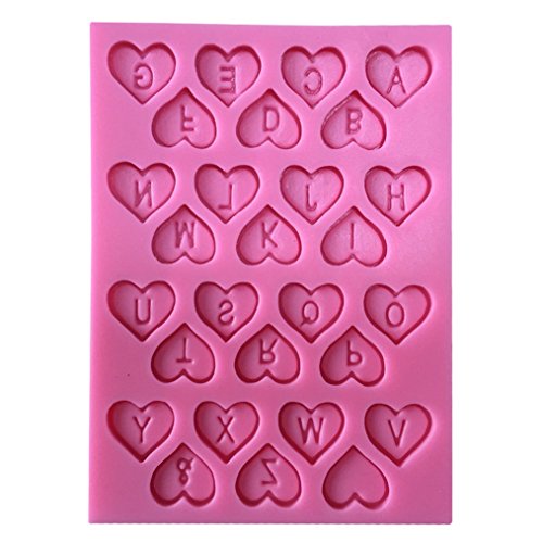 FLY Heart-shaped Alphabet 3D Silicone Cake Mold For Cake Decorating Baking Mould,Pink