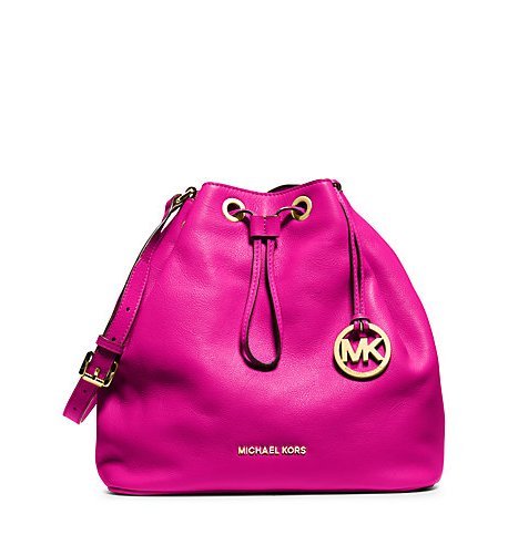 -. Title : Jules Drawstring Leather Large Shoulder in Raspberry