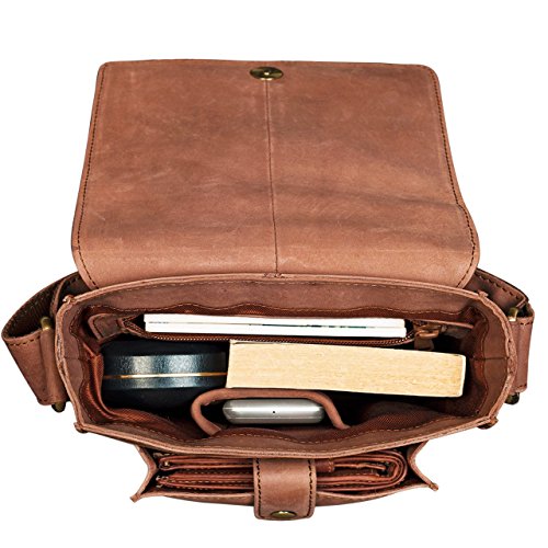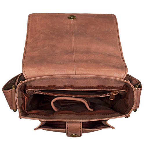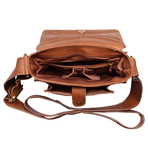 Die Umhangetasche aus Leder bietet praktische Facher zur Aufbewahrung von Stiften, Handy, Schlussel und Tablets / iPads bis zu 8,4 Zoll