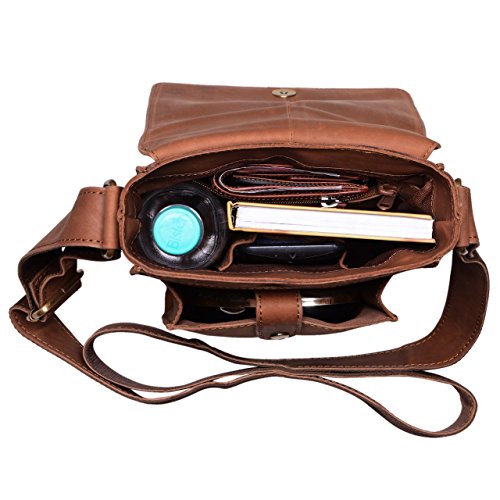 Die Umhangetasche aus Leder bietet praktische Facher zur Aufbewahrung von DIN A5 Dokumenten, Schlussel, Geldborse, Smartphone bis 5,1 Zoll, Schlussel und Tablets / iPads bis zu 8,4 Zoll