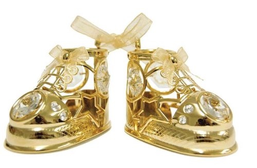 This 24K Gold Plated Baby Shoes ornament features Austrian Swarovski Crystal. This is an original Crystal Delight ornament! Wow!!! This is the finishing touch to just about any room in your home! Swarovski Crystals sparkle beautifully against the light. This is just gorgeous and absolutely the perfect gift for Baby shower and all occasions or self collection.Feature