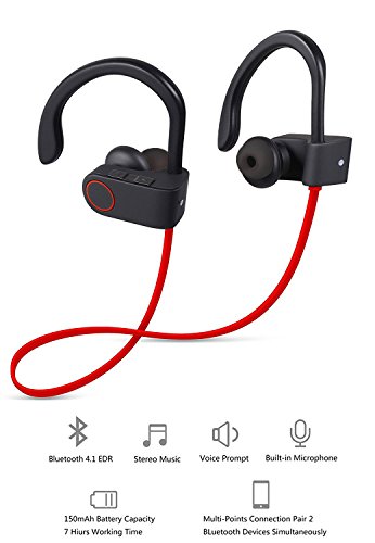 Superior sound quality - In-ear designed wireless earphones with bluetooth version 4.1 and EDR (Enhanced Date Rate) technology offers deep bass and crystal clear treble, support to connect two Bluetooth diveces at same time.